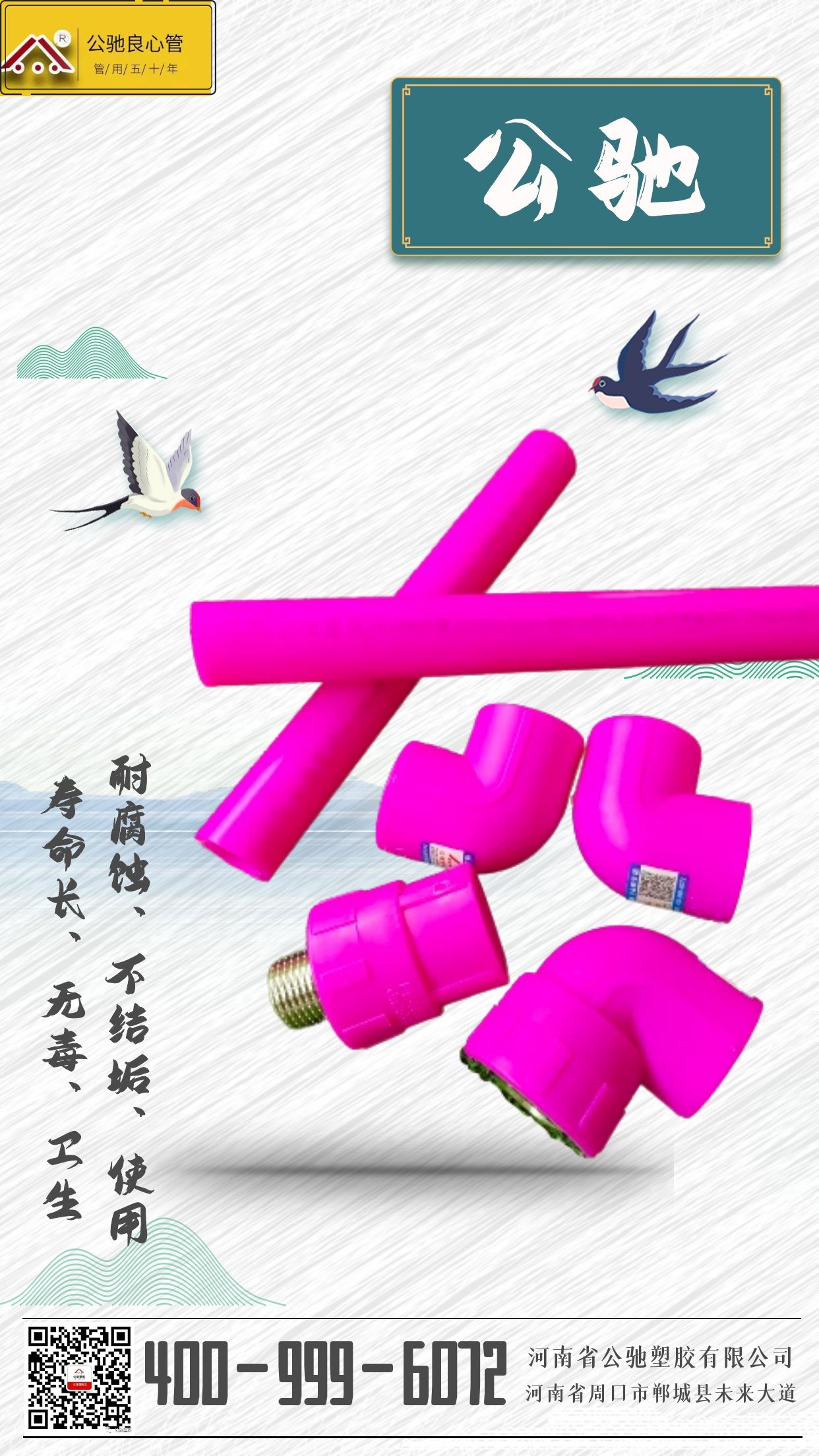 河南省公馳塑膠有限公司主要產(chǎn)品有PE給水管材、管件;HDPE排水管;PE、MPP、CPVC、電力穿線(xiàn)管;檢查井;PVC-U給水、排水管材、管件;電工導(dǎo)管;PP-R給水管材、管件;PE-RT地板輻射采暖管等百余個(gè)系列,數(shù)千個(gè)品種。